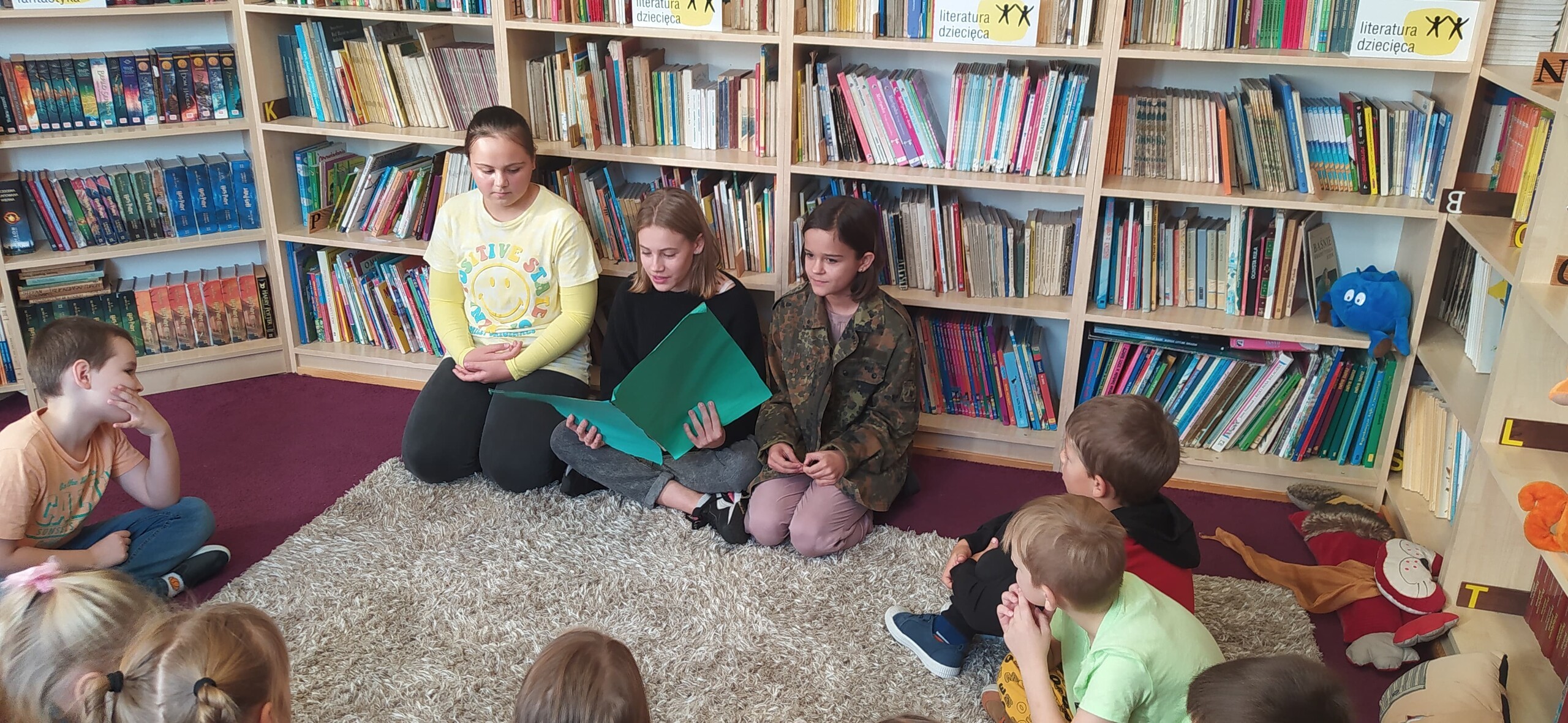 Na koniec dowiedziały się z dobranocki o Reksiu, że sympatyczny piesek ma całkiem przytulnie urządzone wnętrze swojej budy, w której nad ciepłym łóżeczkiem kolekcjonuje swoją biblioteczkę z ulubionymi książkami. Dzieci komentowały dostrzeżone na Reksiowym regale okładki książek i wskazywały je następnie wśród naszych zbiorów. Były to między innymi „Przygody Bolka i Lolka” oraz „Bambi”. Następnie opowiadały, jakie książki mają w swoich pokojach i kto z nimi je czyta.