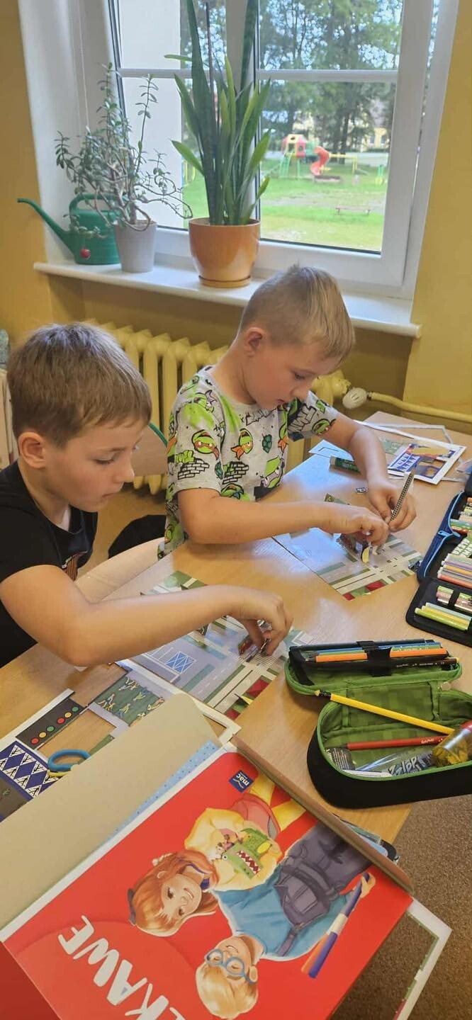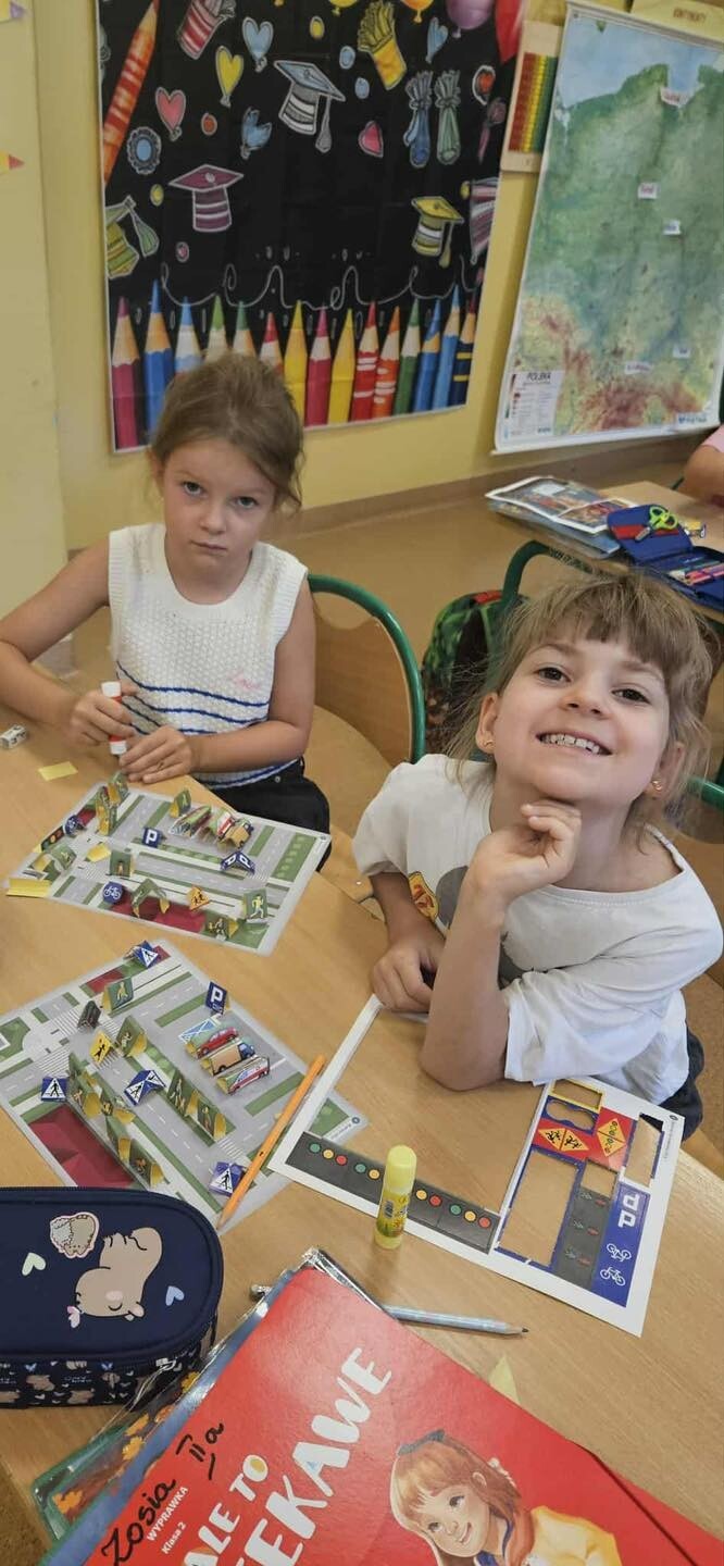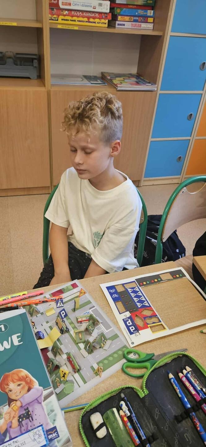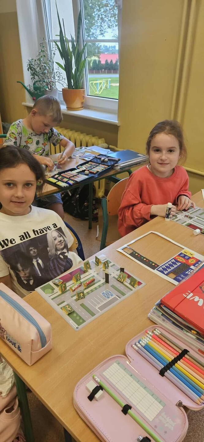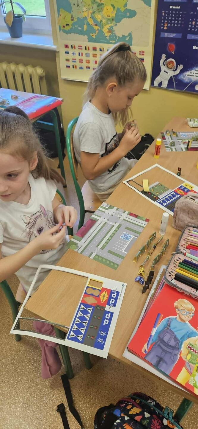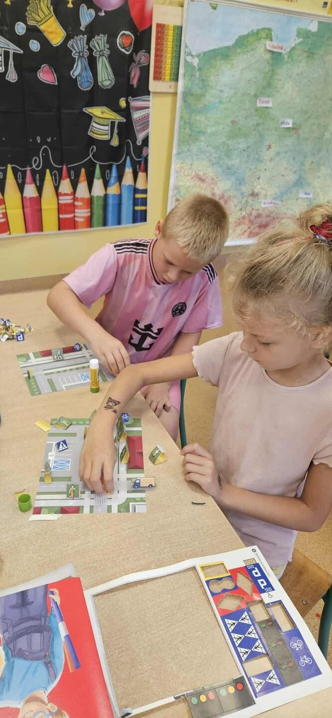 Podczas wczorajszych zajęć (08.09.2025) uczniowie klasy IIA przypomnieli sobie przepisy ruchu drogowego, szczególnie te, które dotyczą ich bezpieczeństwa, zarówno w drodze do, jak i ze szkoły. Omówiliśmy zasady bezpiecznego poruszania się w przestrzeni drogowej na rowerach, hulajnogach czy rolkach. Przypomnieliśmy sobie również najważniejsze znaki drogowe. Obejrzeliśmy filmy edukacyjne, wykonaliśmy makietę ulicy, a także przećwiczyliśmy nabytą wiedzę praktycznie podczas spaceru. Na koniec wszyscy otrzymali dyplomy "Bezpiecznego uczestnika ruchu drogowego".