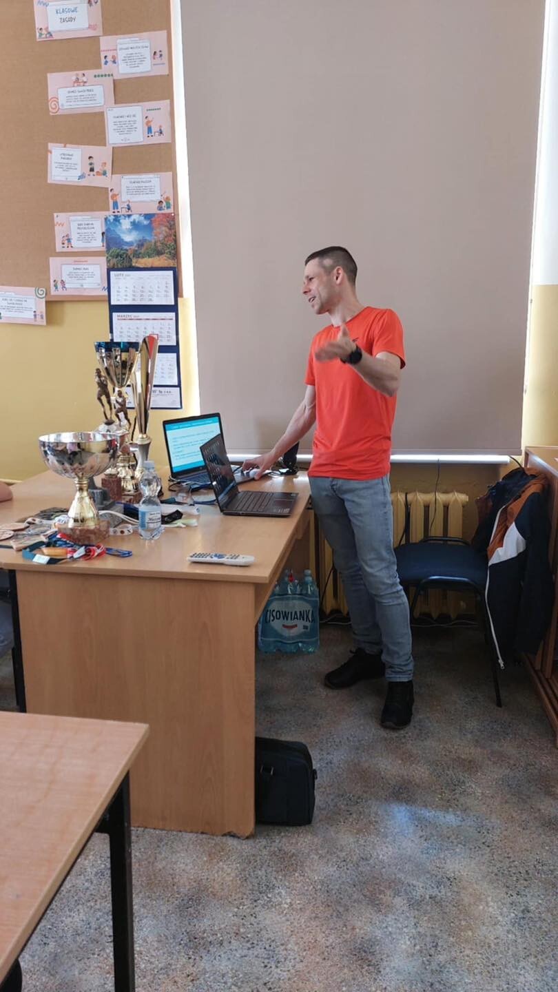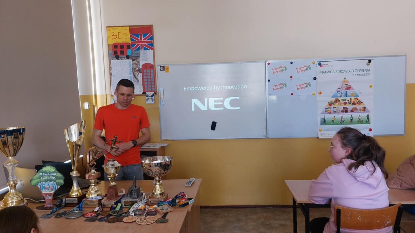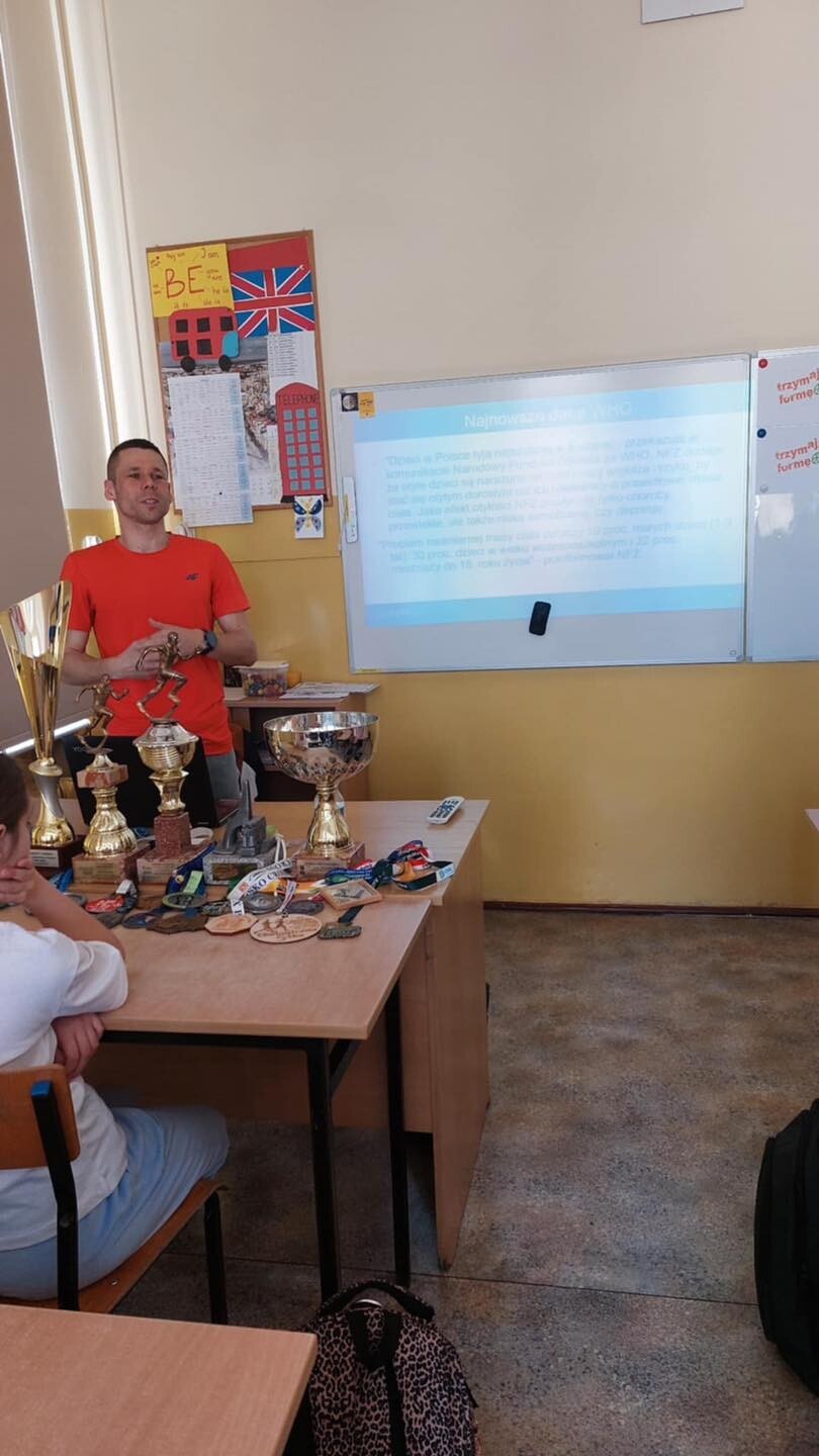 Pan Łukasz zachęcał do aktywności fizycznej, która pozytywnie wpływa na nasze ciało oraz mówił, że zdrowe nawyki żywieniowe i uprawianie sportu pozwolą cieszyć się zdrowiem.