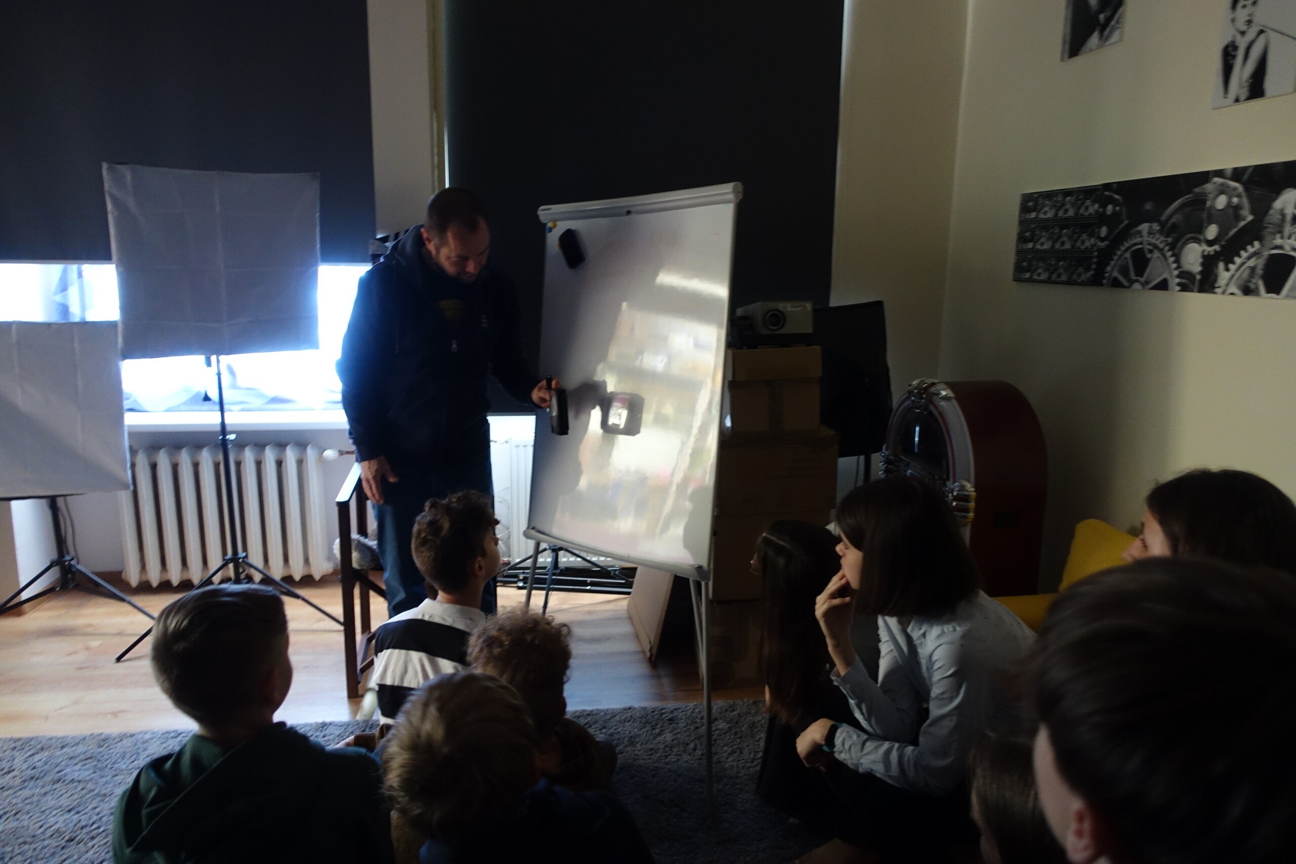 W czwartek, 18 maja 2023, gościliśmy w naszej bibliotece szkolnej Pana Grzegorza Kubiaka, który przeprowadził zajęcia medialne dla kl. VIIIB o historii fotografii. Gość przybył do nas aż z Irlandii i opowiedział o swoich fotograficznych zainteresowaniach. Nasi ósmoklasiści mogli dokładnie przyjrzeć się i samodzielnie sprawdzić, jak działają lustrzanki i inne aparaty fotograficzne zgromadzone w Mediatece naszej biblioteki: polski "Start", radzieckie "Smiena" i "Zenit", a także niemiecka Exa, analogowy Kodak - sprzęty reprezentujące wiek XX, czy też zgromadzone aparaty cyfrowe już z XXI wieku. Gorąco dziękujemy za przybycie i fachowe zajęcia w świecie fotografii .