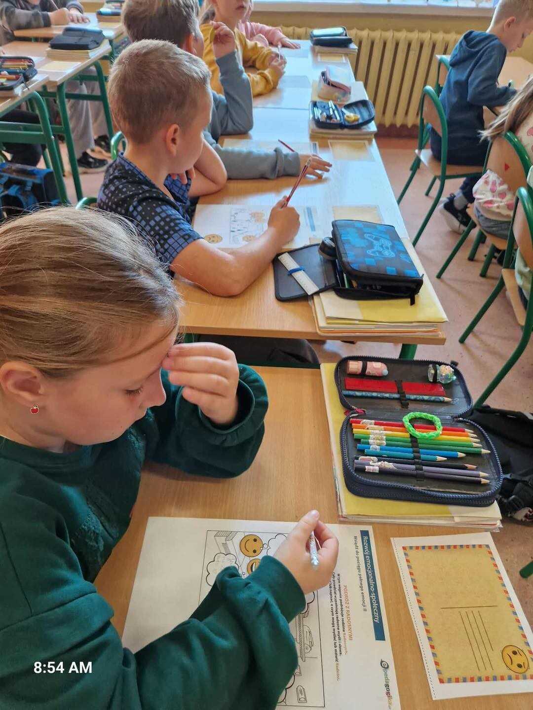Dzisiaj (03.10.2025) w ramach Tygodnia Przeciwdziałania Przemocy i Budowania Relacji klasa III b wsiadła do pociągu Pana Empatii. Zagraliśmy w grę planszową, w której zadaniem było odegranie emocji, co okazało się być trudnym zadaniem. Spróbowaliśmy wsiąść do pociągu, w którym jechali Radośni, Smutni, Złośnicy i Strachliwi. Pomogliśmy pokonać im ich słabości, dając kilka dobrych rad, które i dla nas okazały się przydatne.
