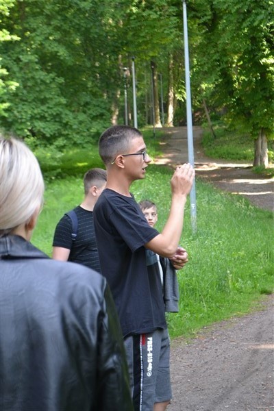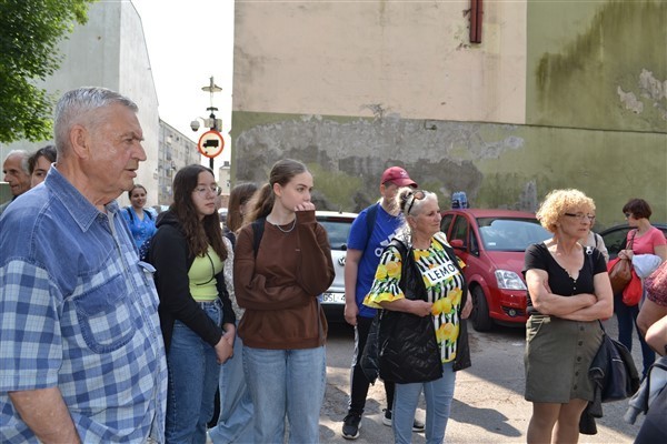 Trasa biegła przez Park im. Bolesława Chrobrego, czyli miejsce dawnego cmentarza żydowskiego, przez ul. Derdowskiego, a więc nową synagogę i plac Pokoju. Tam seniorzy dowiedzieli się o domu handlowym Wilhelma Zeecka, największym w dawnym mieście. Po 15-minutowym postoju udaliśmy się do dawnych zakładów włókienniczych Maxa Bauma i ulicą Staromiejską dotarliśmy w miejsce starej synagogi. Kolejne istotne obiekty na naszej trasie to ul. Armii Krajowej oraz browar klasztorny rodziny Magdalinskich. U wylotu ul. Staromiejskiej przekazaliśmy naszym gościom kilka ciekawych informacji na temat dawnej zapałczarni (późniejszy ZWAR), budynku szpitala oraz gmachu, w którym mieści się Liceum Ogólnokształcące nr 1. Następnie podsumowaliśmy naszą podróż i udaliśmy się do autobusu.