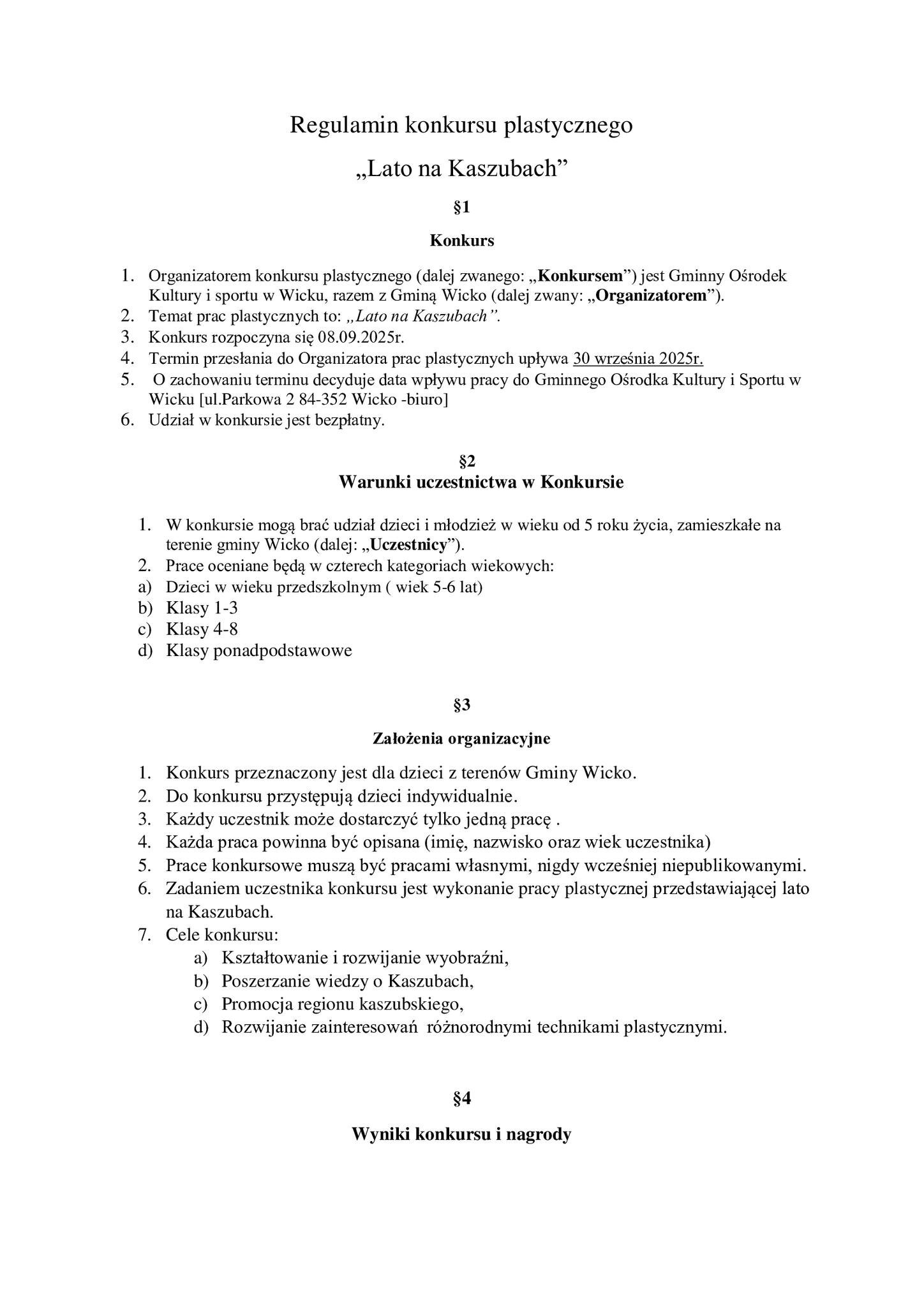 Konkurs plastyczny "Lato na Kaszubach"