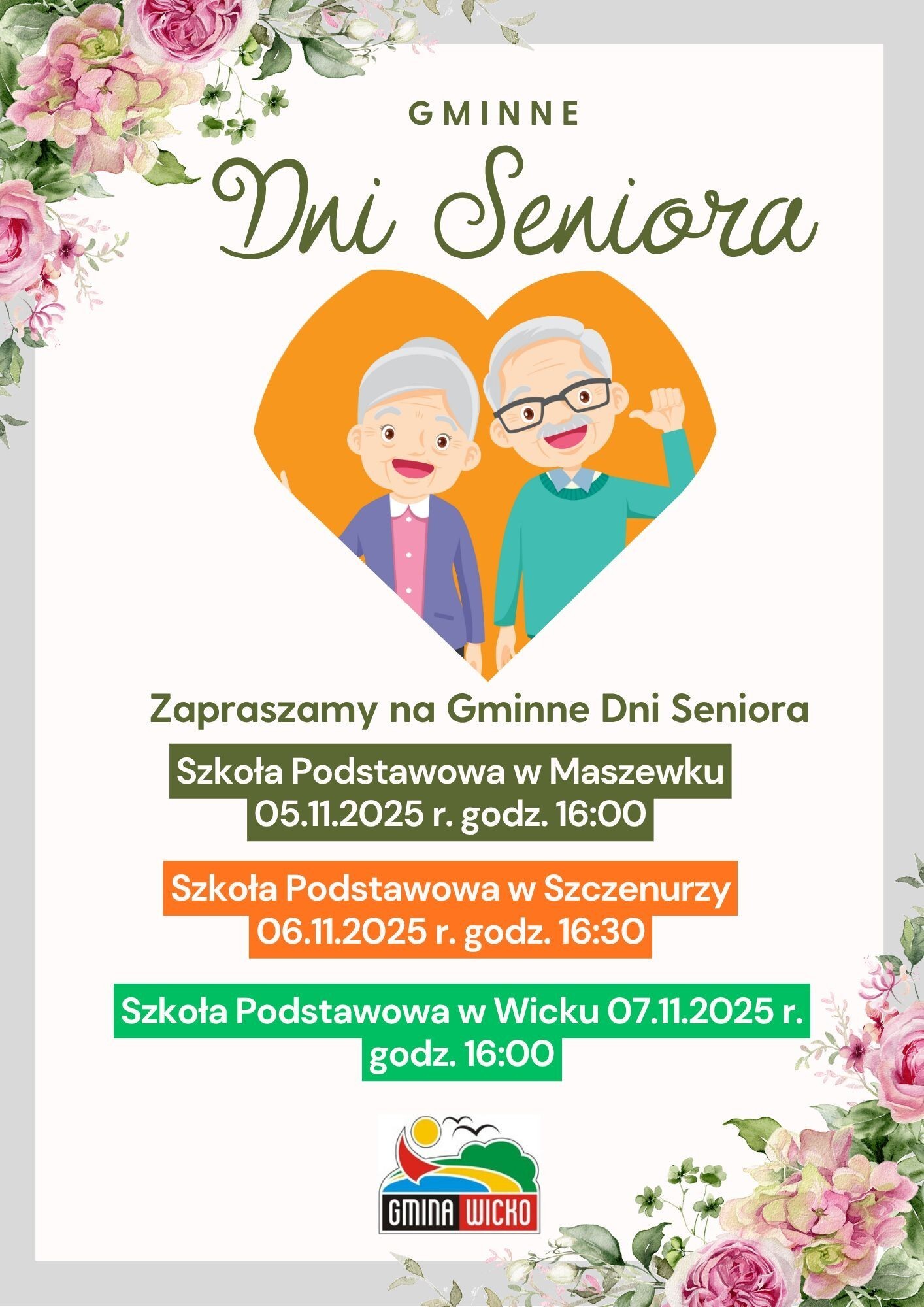 Serdecznie zapraszamy wszystkich Seniorów z terenu Gminy Wicko na uroczyste obchody Dnia Seniora!