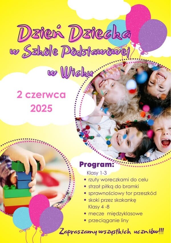 W tym roku zapraszamy Was w poniedziałek, 2 czerwca 2025, na wspólne obchody Dnia Dziecka i Dnia Patrona.