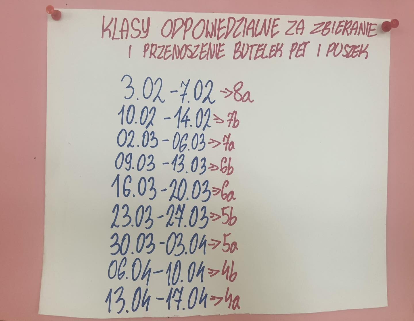 Natomiast Samorząd Uczniowski ustalił grafik, według którego klasy opróżniają pojemniki, znajdujące się na szkolnych korytarzach.