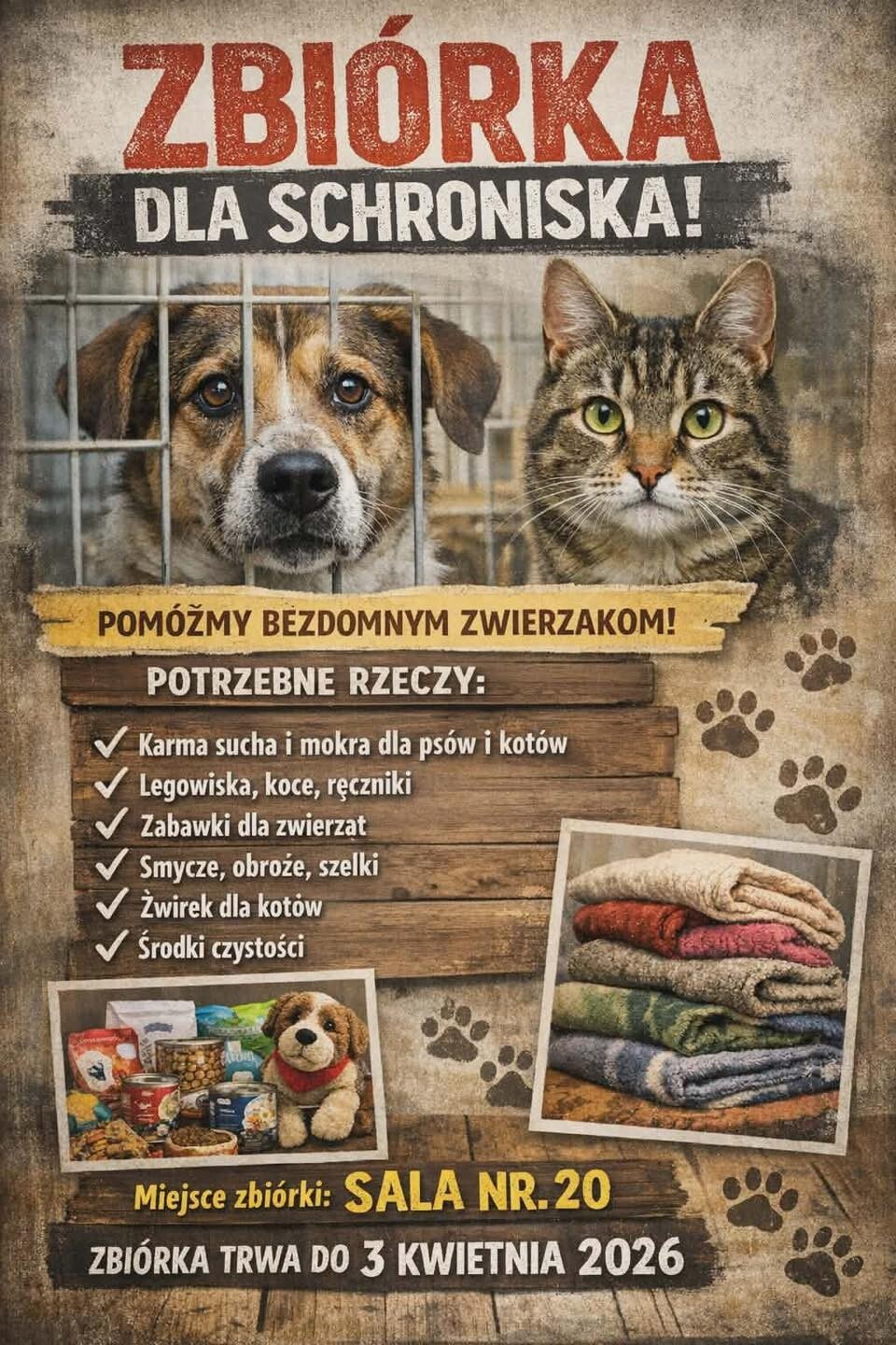 Nasza szkoła organizuje zbiórkę darów dla schroniska dla zwierząt.