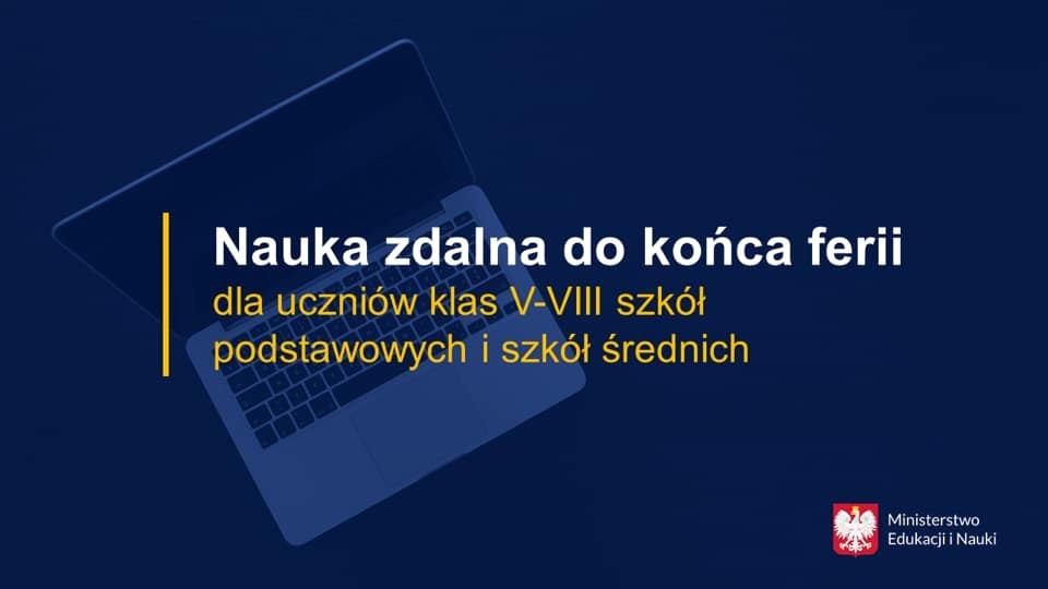 - uczniowie klas 5-8 mają zajęcia w trybie zdalnym z domu,